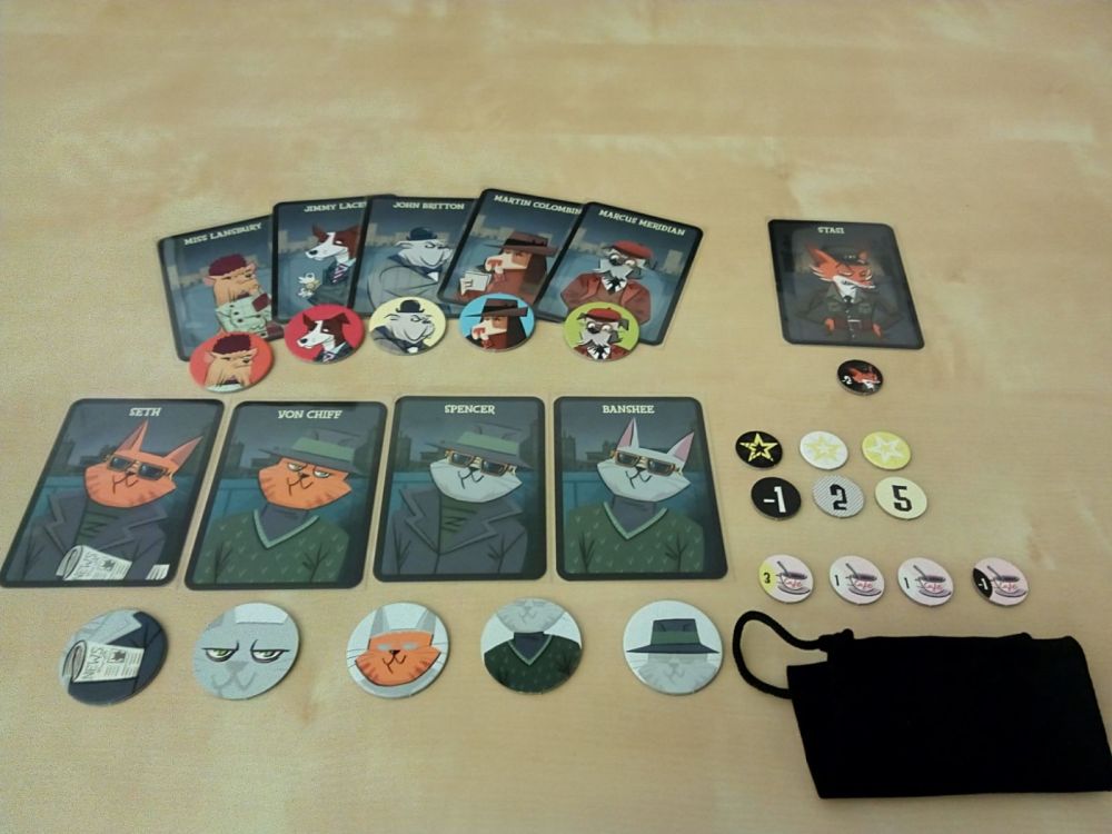 En primer lugar todos los jugadores reciben una carta de sabueso investigador y su correspondiente ficha. La misión de estos investigadores será descubrir al jefe espía de un peligroso clan de gatos.
