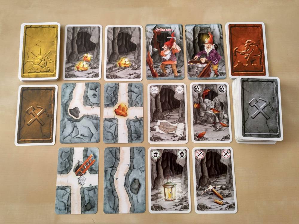Saboteur se trata de un juego de roles ocultos. En primer lugar, y dependiendo del número de personas que vayan a participar en la partida, configuraremos el set de cartas de roles, dejando fuera de la partida las que correspondan (si no juegan el máximo de jugadores). Un ejemplo sería comentar que en una partida de 4 personas hay 3 enanos y 1 saboteador.
