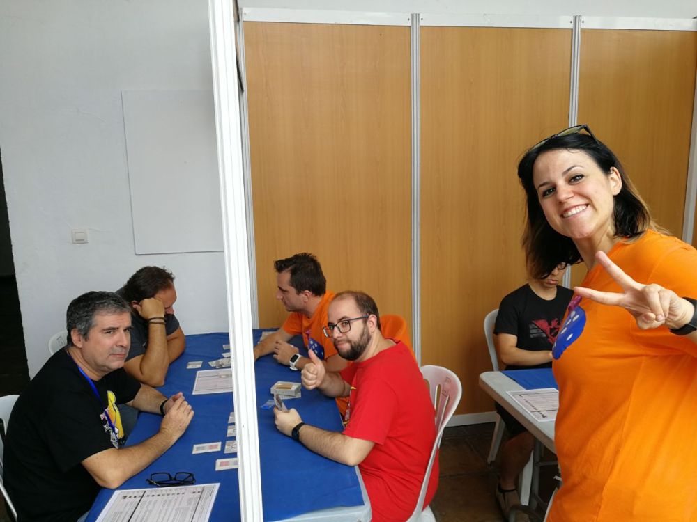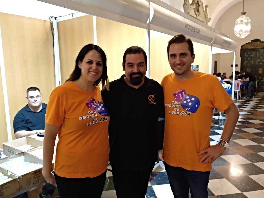 Este año además hemos ido equipados con nuestras camisetas de Mis Juegos de Mesa y nos ha hecho mucha ilusión que algunos nos hayáis saludado, preguntado e incluso hayáis jugado alguna partida con nosotros. La verdad es que mola mucho que te digan que te siguen por RRSS por tus fotos de juegos o que han leído algún que otro post, pues el objetivo principal es divulgar los juegos de mesa modernos, por ese gran universo que es Internet (por eso entre otras cosas estamos en una Asociación Cultural). Lo hacemos por hobby y sin ningún tipo de remuneración (ni anuncios, ni patrocinios, ni nada … de hecho nos llamamos «Mis Juegos de Mesa» porque hablamos de los juegos que nos vamos comprando y vamos añadiendo a nuestra ludoteca).