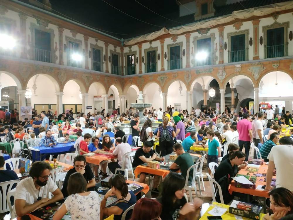 En el recinto, el hermoso Palacio de la Merced, hay cabida para todo el mundo. Por todos sus rincones se instalan, durante estos días, autores que vienen para presentar sus prototipos, juegos ya editados o que sueñan con editarlos mediante el apoyo de mecenas (Kickstarter), editoriales que vienen a presentar sus ultimas novedades y algunos de sus grandes clásicos, tiendas cargadas de ofertas y juegos de segunda mano y … ¡hasta vienen a presentarnos mesas para los más jugones! (quiero una de esas malditas mesas …).