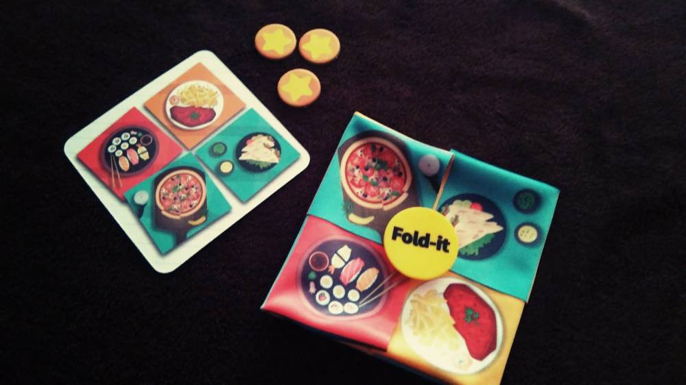 Por último, se colocan también en el centro de la mesa las fichas Fold-it, al alcance de todos los jugadores, tantas fichas como número de jugadores. Es decir, si juegan 4 jugadores, estarán las tres, pero si juegan tres jugadores, sólo habrá dos fichas.